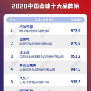 鸡鸭齐鸣,巨头争霸 2020中国卤味十大品牌揭晓