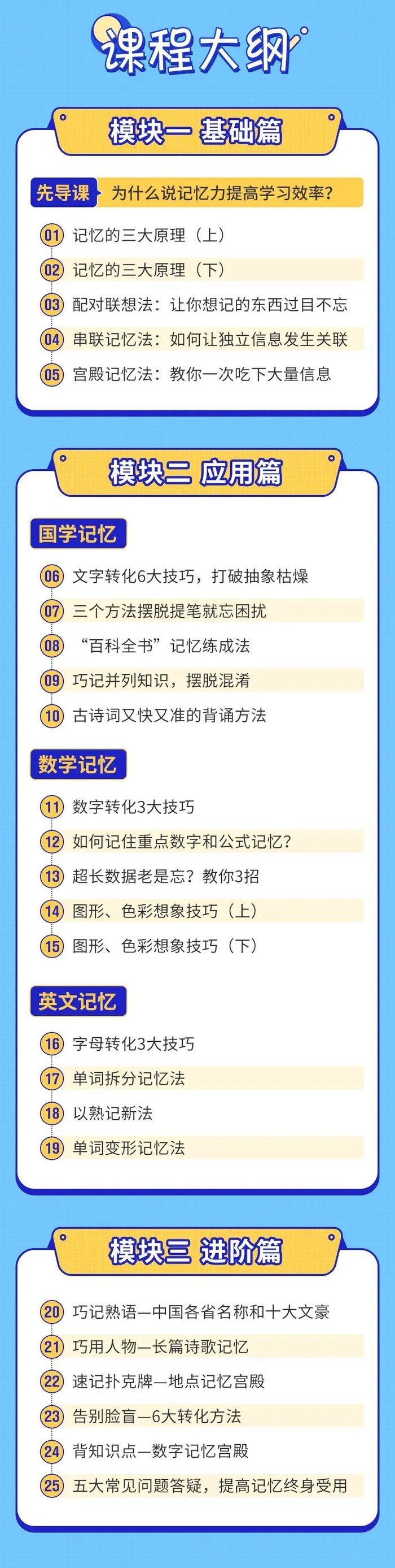 来看一眼大纲,25节记忆大课