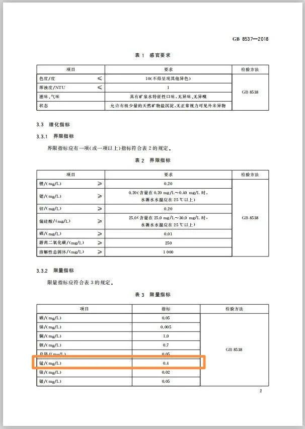 采访中记者了解到关于饮用天然矿泉水,2018年发布的“食品安全国家标准 ”“限量指标”中明确,“每升水中,锰的含量不超过0.4毫克”。但在山姆会员商店出示的检测报告只说明了黑色颗粒物是什么,并没有这些元素的含量。