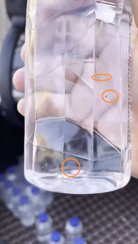 4月18日,准备饮用时,他突然注意到水里有黑色的颗粒物,“肉眼看上去像海苔一样。”张先生说,接下来,他挨个检查了尚未饮用的近20瓶水,结果发现几乎每瓶都能明显看到有同样的黑色物质。