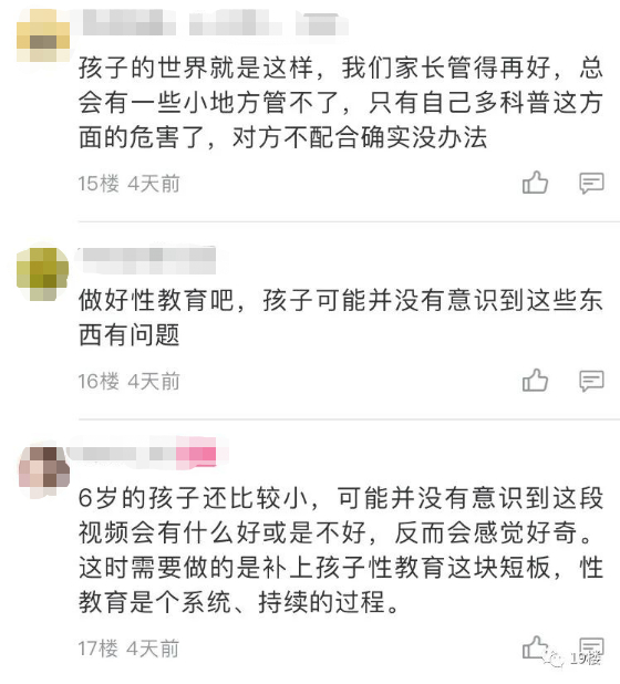 有家长就此反思,一方面要筛选孩子能够接触的信息来源渠道,保证他们有良好的上网环境,另一方面,家长也要为孩子铺垫好对两性的正确认识,越早形成良性认知越好。