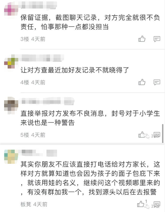 有网友提出了对策,提醒家长保留证据,以孩子的名义找清楚视频源头后报警,或者干脆举报对方账号。
