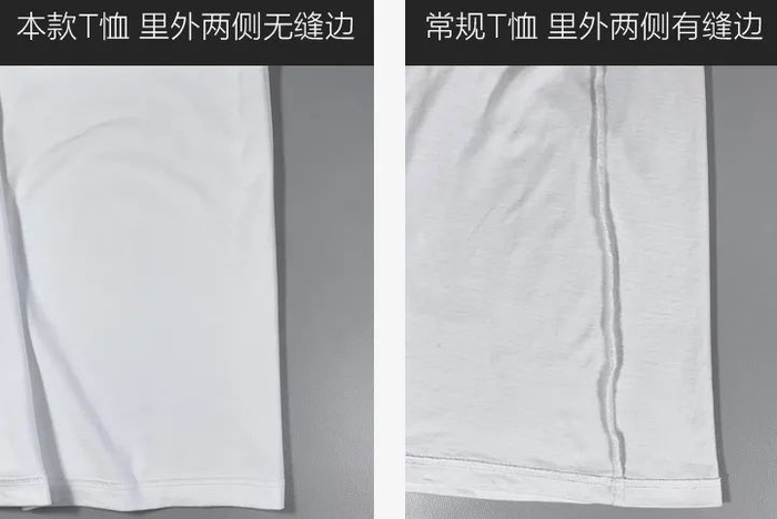 可普通的T恤衣身两侧都有接缝,有些甚至还会把标签缝在腰部,穿在身上后,接缝处的凸起和皮肤来回摩擦,又扎又痒实在不舒服。