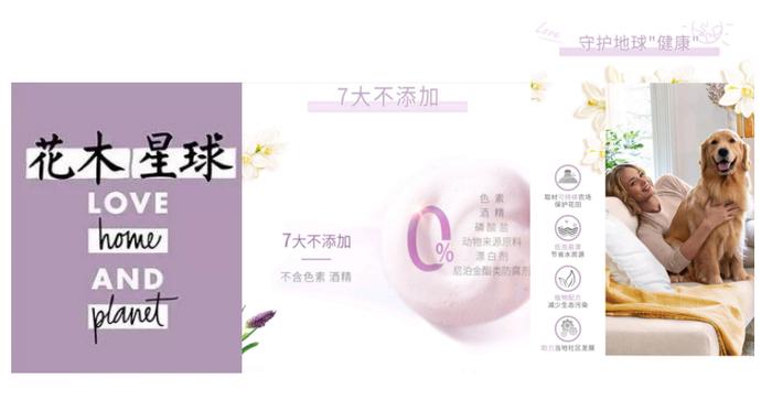 另一个较为年轻的品牌花木星球则是于2019年才正式进入中国,其产品使用95%自然成分,减少了日化产品中的化学添加剂使用,以减少生活中日常化学添加剂物质排放。且花木星球的瓶身使用100%的再生材料,让已有塑料循环起来,不产生新的塑料垃圾。