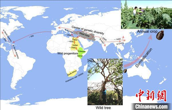 中新网昆明4月22日电 (记者 胡远航)记者22日从中国科学院昆明植物研究所获悉,该所科研人员参与的一项研究揭示蓖麻从树木到作物的起源和驯化历史。研究表明,东非可能是蓖麻的起源地,而栽培蓖麻是从少数野生群体驯化而来,随后在世界多个地区广泛引种栽培。