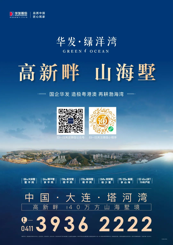 2021年,华发将进一步开拓大连,于城市“九湾九品”之上再启新篇——约40万平方米升级版山海大盘华发绿洋湾,为滨城市民打造一种全新的高端山海墅境生活方式。