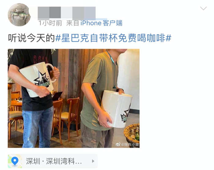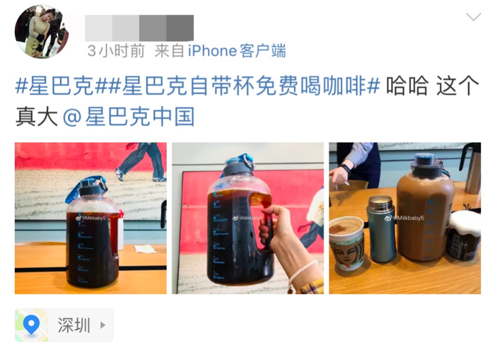 原标题:星巴克自带杯可免费喝咖啡!有人竟带了这?深圳的情况是......