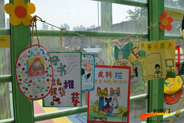 在这个活动中,中班共98位小朋友积极制作、踊跃参加。一张张富有创意的“好书推荐卡”是孩子们和爸爸妈妈共同完成的,他们利用废旧挂历纸、毛线、蛋糕盘、泡沫、扣子等多种不同的废旧材料,通过画一画、剪一剪、粘一粘、折一折的方式,将绘本中的点睛画面、精彩话语,及阅读后的收获、推荐理由等要素,凝聚在不同造型的卡片上,为我们呈现出了一场精彩绝伦的视觉盛宴。