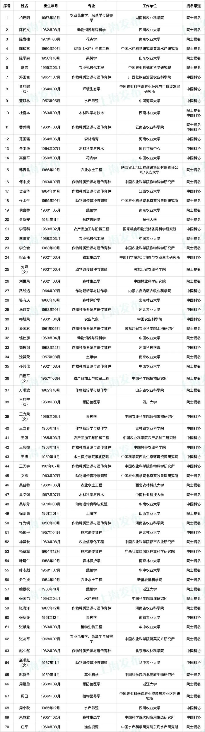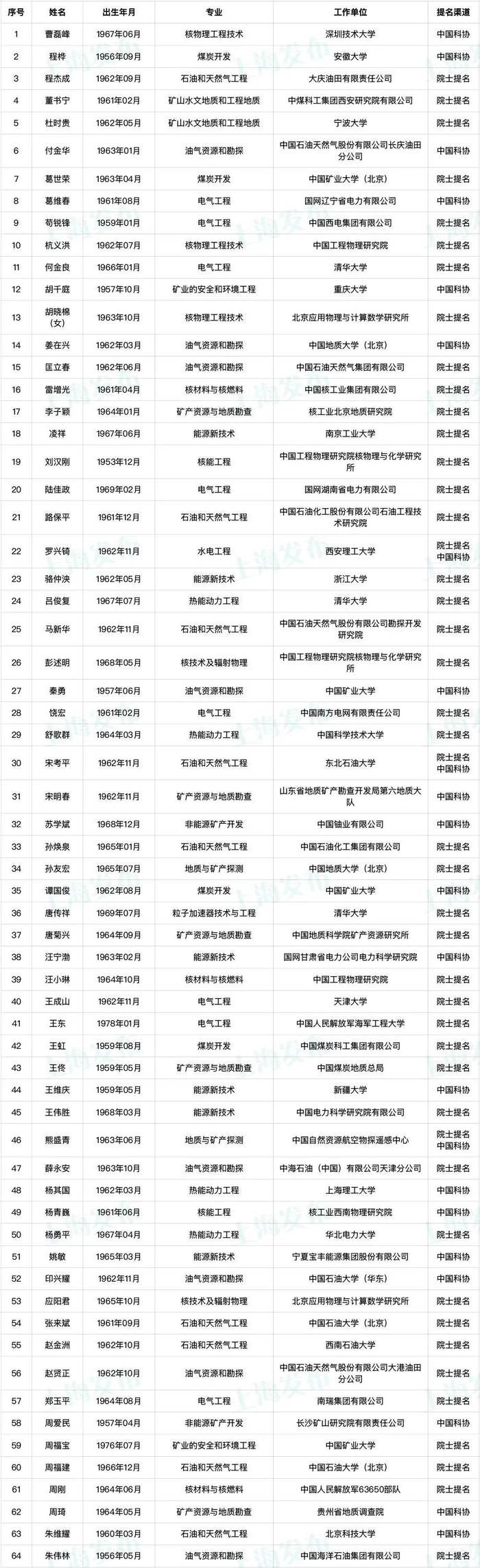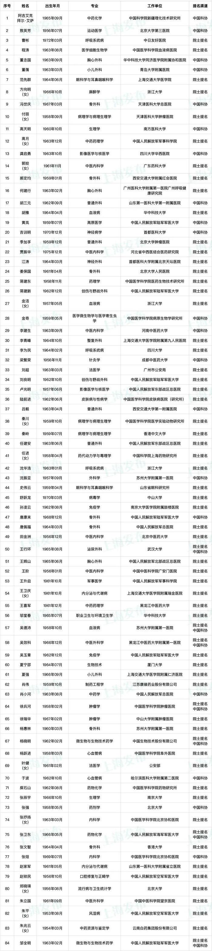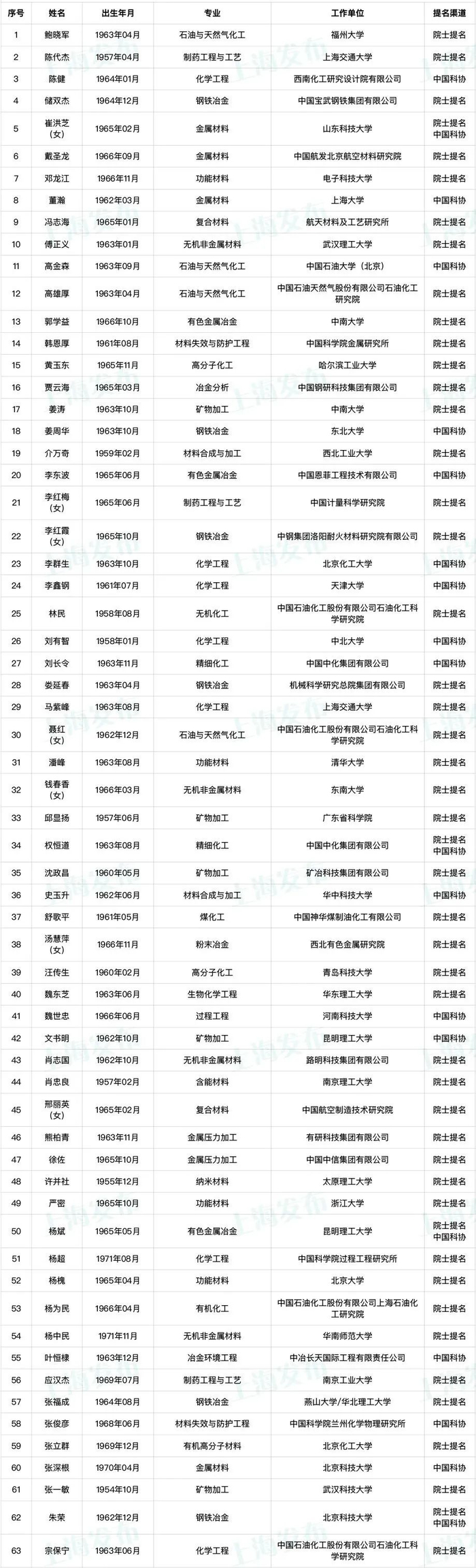 提名渠道:院士提名