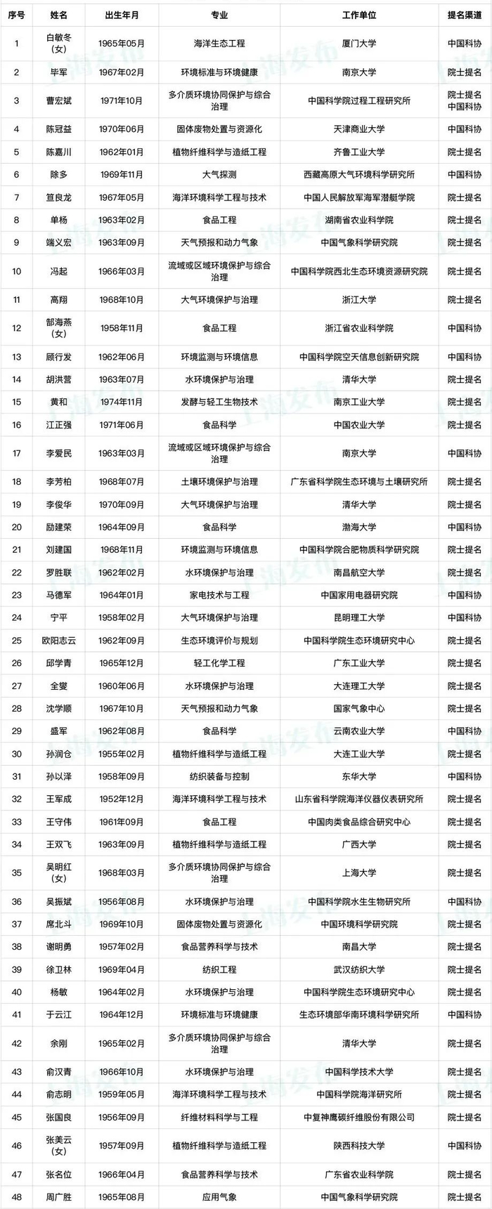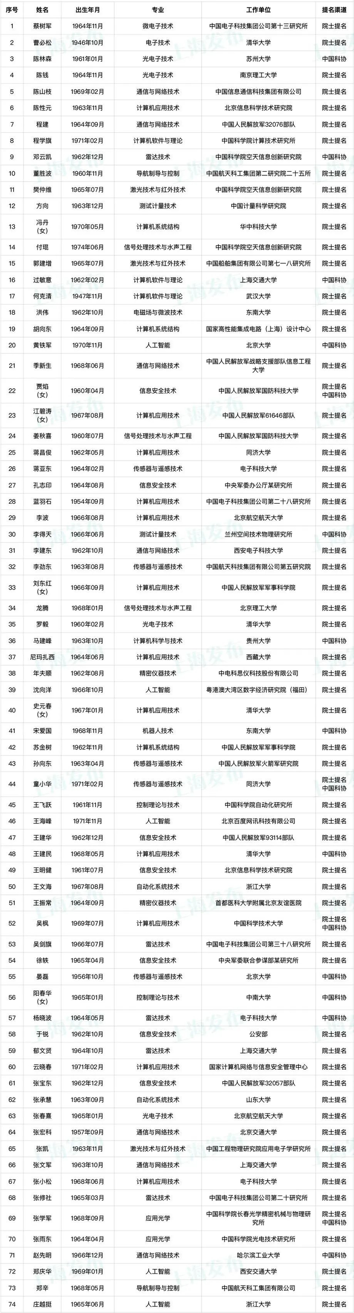 提名渠道: 院士提名