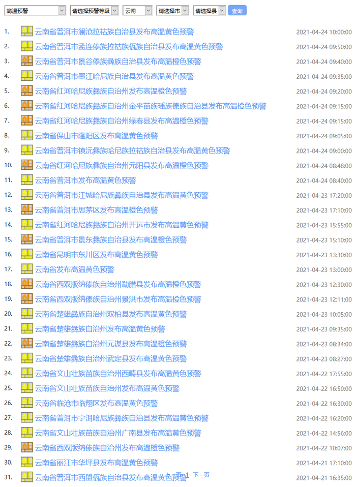 原标题:31条高温预警!云南多地最高温冲上30℃,注意防晒