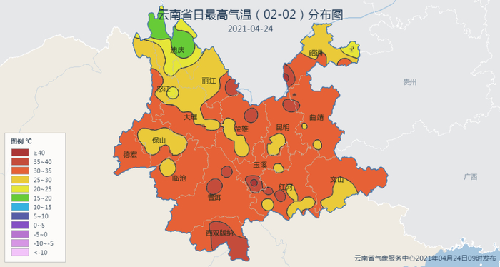 但放眼全省,84个县站最高气温超过30℃,河谷地区的几个“火炉”已开启了“飙高温”模式。根据中央气象台24小时实况,昨日17时,元江、巧家两地的气温均突破了40℃,其中气温最高的元江达到了40.5℃。