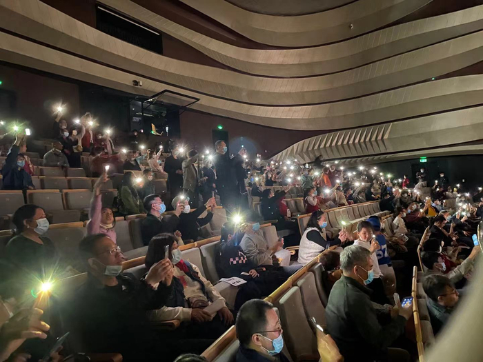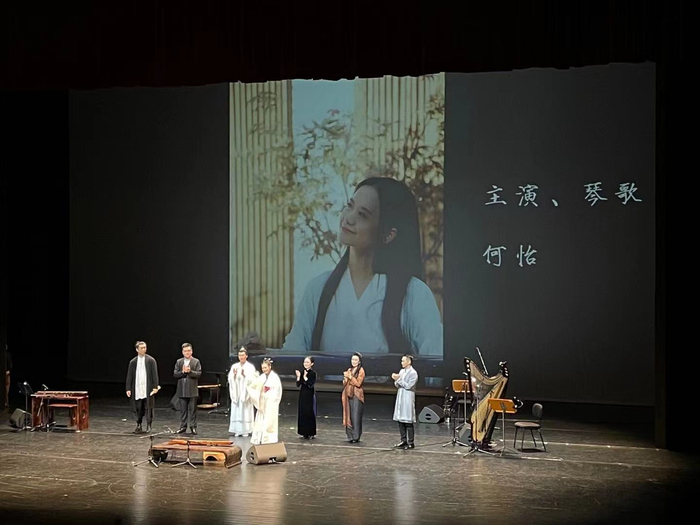 演出结束后,《如梦令》音乐会主演、歌者何怡与主创人员一同谢幕,在致谢环节,她喜极而泣,一度哽咽,“流淌在中国人血液中的中国传统文人琴歌艺术被成功搬上舞台,是我们作为国人的自豪。”在场观众则是举起手机,跟随音律轻轻摇晃,与她一同分享这份感动。