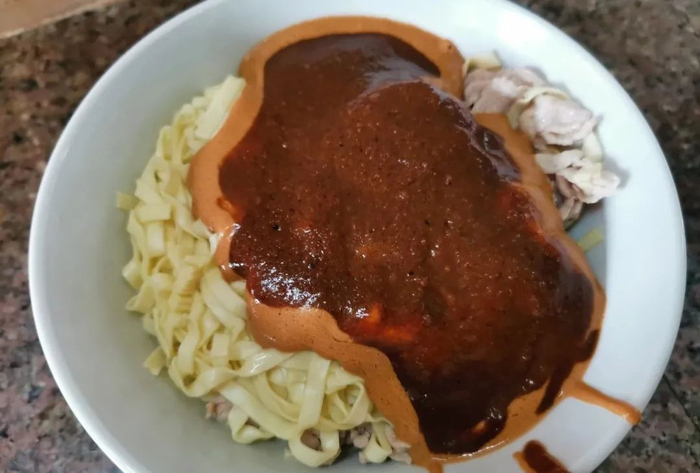 这里的日常小吃是沙茶面、沙茶粿和沙茶饺。潮州的沙茶面和厦门等地很是不同,首先选用的是潮州扁面,再者是干捞后淋上调好的花生酱和沙茶酱,两者混合干拌后更加咸鲜辛香,最好再搭配上一碗粒粒饱满的肉丸汤,一口面一口汤,那叫一个爽啊!
