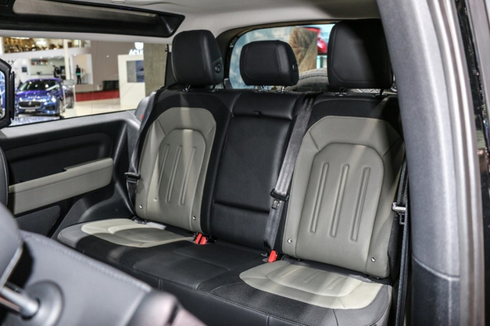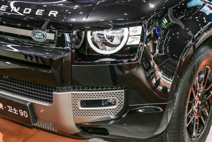 外观方面,新车延续了卫士110的造型设计风格,前脸两侧方形大灯内部采用了半圆形LED光源,点亮以后辨识度极强,同时引擎盖边缘的"DEFENDER"车型标识也得到了保留,下方保险杠处带有大面积的银灰色护板,让前脸看起来更厚重。