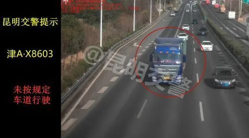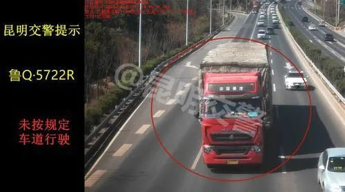 2020年7月开始,昆明市公安局交警支队在昆玉高速(鸣泉立交至大渔立交路段)对货车未按规定车道行驶(高速公路未靠最右侧行车道通行)、货车违反规定驶入限货区域,以及机动车违反禁止标线指示的交通违法行为进行电子监控抓拍并曝光。