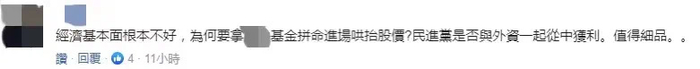 也有网友讽刺“经济基本面根本不好...为何拼命进场哄抬股价?民进党是否与外资一起从中获利。值得细品...”↓