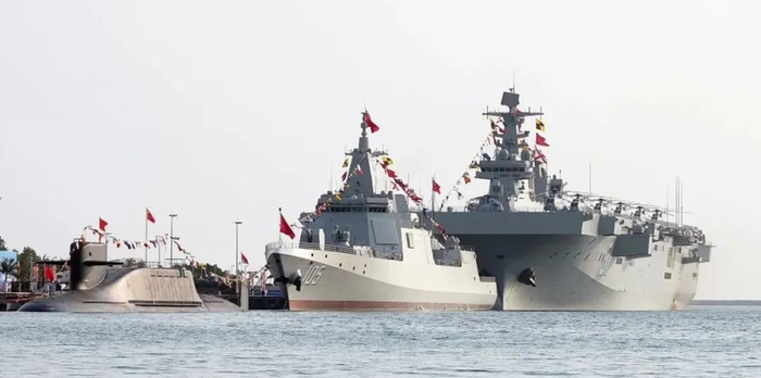 4月23日,海军三型主战舰艇——长征18号艇、大连舰、海南舰在海南三亚某军港集中交接入列。