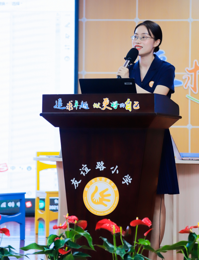 南宁市友谊路小学党支部书记赖雪冰主持现场观摩活动