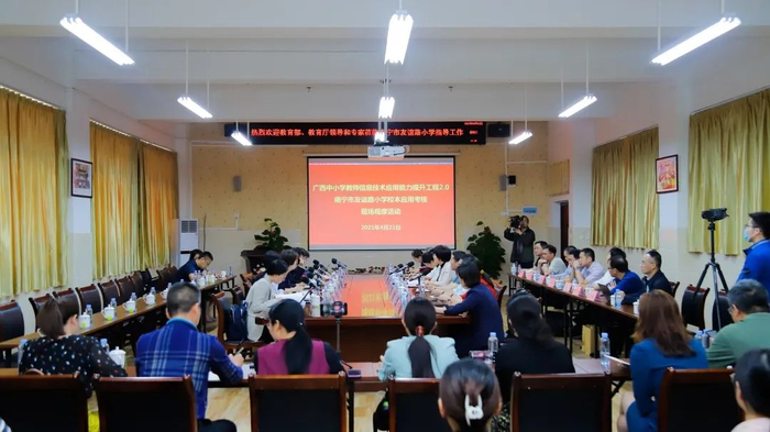 当天,参加现场观摩调研活动的专家组成员有:教育部教师工作司调研员张春柳,国家中小学教师信息技术应用能力提升工程专家组组长闫寒冰教授,国家中小学教师信息技术应用能力提升工程专家组成员、自治区教育厅师培中心主任李桂良,自治区教育厅教师工作处副处长商秀梅,自治区教育厅师培中心调研员韦昌勇,自治区中小学教师信息技术应用能力提升工程专家组成员等。南宁经开区文体教育局局长卢国彦等陪同参加。