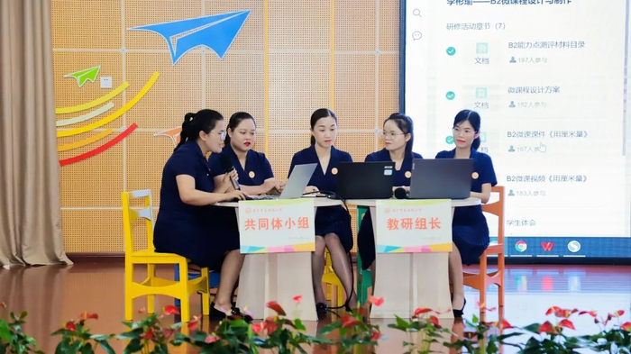 为了让专家们更清晰地了解学校教师基于微能力点的研修路径及校本应用考核流程,数学组李彬瑜老师共同体、教研组长、学校校本应用考核小组对学校校本应用考核进行现场模拟演示。老师现场展示微课视频《用厘米量》,以及学生对上课的感受视频等,令专家组印象深刻。