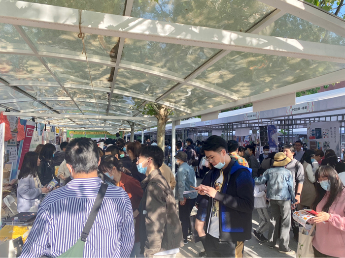 胡同知道传统图书出版行业必定会衰落,整体会下滑,“这是没有办法的”,但看到市集上都是新面孔,年轻读者们大包小包背着新买的书,胡同挺感慨:“这个行业大概不会死。”