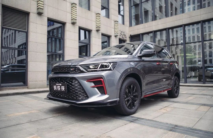 在造型设计上,该车前脸采用纳米盾霸气超大前格栅,激情红质感F套件,英雄之眼LED日间行车灯,使得整个前脸霸气潮酷十足,侧身箭羽式双腰线设计使得车身整体看起来既有扎实的肌肉感,搭配黑色大包围,运动感十足。
