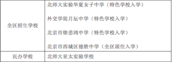北京西城公布义务教育阶段学区初中一览表,德胜中学“全区派位入学”