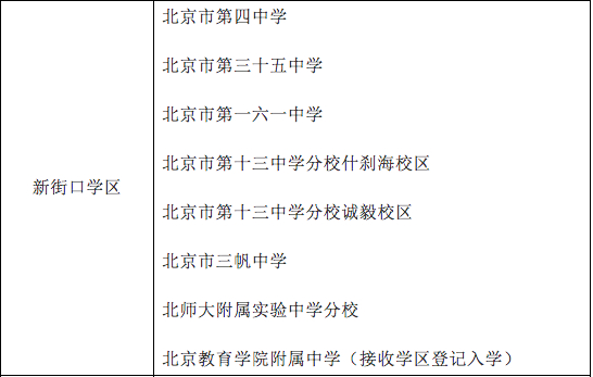 原标题:北京西城公布义务教育阶段学区初中一览表,德胜中学“全区派位入学”