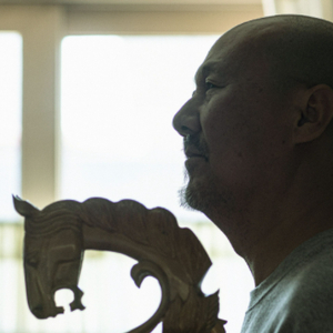 ▲腾格尔和他心爱的马头琴。新京报记者 郭延冰 摄