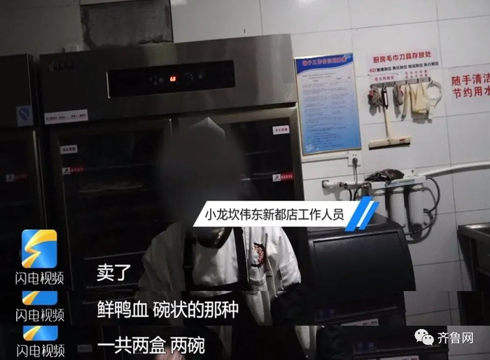 小龙坎伟东新都店的大堂经理说,店里已经两天没有售卖鲜鸭血了,市场监管局的工作人员在后厨确实也没有发现相关产品。