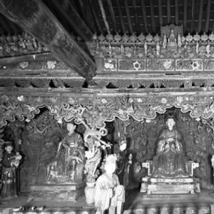 据山西古建筑与彩塑壁画保护研究院院长任毅敏介绍,山西省临汾市东羊后土庙,始建于元至元二十年(1282年),元大德七年(1303年)地震被毁,元至正五年(1345年)重修,占地4211平方米,建筑面积1072平方米,现存山门、戏台、仪门、钟鼓楼、侧殿、大殿等,是一处集建筑与彩绘泥塑精华于一体的古代寺庙。1986年被公布为山西省第二批重点文物保护单位。2006年被公布为第六批全国重点文物保护单位。后土庙内,有全国仅存七座的早期戏台中唯一一座十字歇山式戏台,八卦藻井,层层叠上,结构别致,工艺精湛。是金元时期戏台建造规制的重要实物遗存和建筑典范。尤其顶部为十字歇山式,没有一根大梁,内檐梁架上由三层斗拱叠成藻井,形成“八卦攒顶”,又称为“八卦戏台”,堪称我国古代建筑一绝。其圣母殿为明代建筑,殿内保存有明代彩绘泥塑,大小塑像共计161尊,壁塑悬塑共计230平方米。是明代少有的彩塑之佳作。