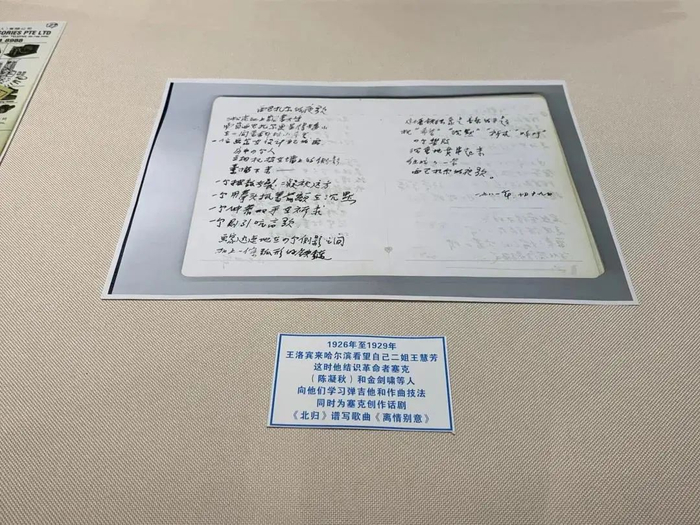 在哈尔滨音乐博物馆展出的展品中,就有歌曲《离情别意》的创作手稿。