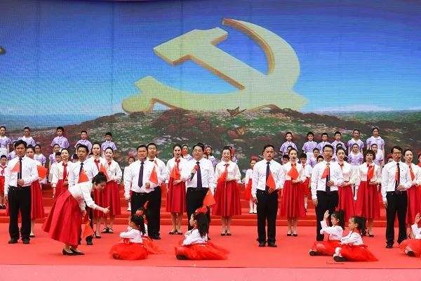 接着,在“砥砺前行”篇,情景剧《红色之路》带领着现场来宾们回顾了党的百年奋斗历程,领略了党不惧艰难、艰苦奋斗的精神。舞蹈《在灿烂的阳光下》展示了党顽强的生命力,体现了祖国事业的蓬勃发展。随后,一群身穿各民族服饰的龙塔孩童欢奔而来,载歌载舞表演《五彩大中华》。