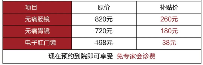 活动期间,专家会诊费全免、无痛肠镜/无痛胃镜检查、电子肛门镜检查等费用享高额补贴。