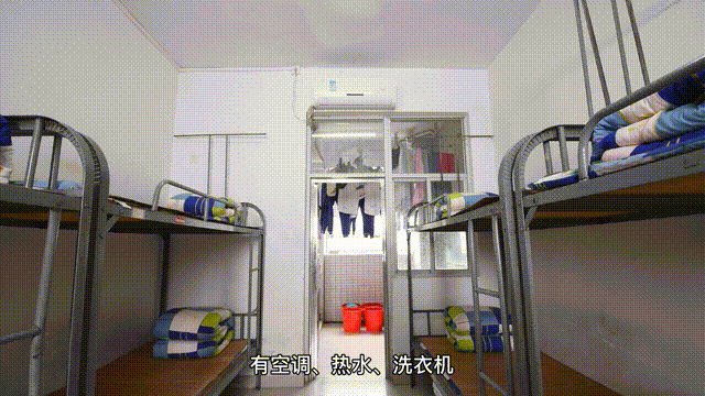 宿舍里,学生能感受凉风习习,阳光明媚,房间备有空调、吹风机,吹散一天学习的疲惫,严格中又带有人性化的管理;