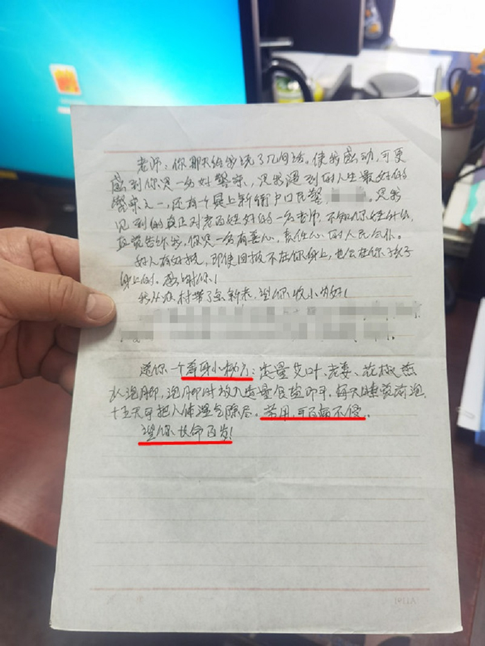 次日下午,非常激动的罗某再次来到信访室,并送来一封感谢信和一袋约20斤重的新米表达对民警的感谢。民警收下罗某的感谢信,平平整整地放在办公桌上,将大米还给了罗某,民警叮嘱罗某:“你的心意,我们感受得到,但大米我们不能收,能帮助你解决实事,即便再小也是我们心中的大事,能得到你的肯定和感谢,我们特别欣慰。不过,你以后驾车出行,一定要遵守交通法规,安全文明出行。”