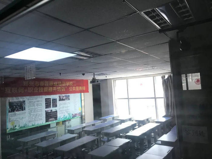 说是学校,只有租用的几间办公室,四五间的样子,这其实是人们印象中的培训班。透过玻璃门,可以看到里面有办公桌椅和课桌椅。“平常上课的人数不多,也就一二十个吧,有时候有,有时候没有。”一位楼上的租户告诉记者。