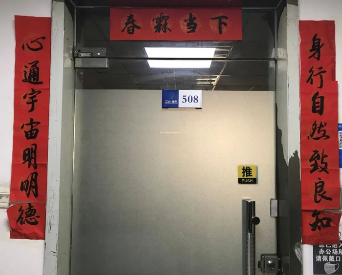 4月28日下午,山东商报·网记者来到春霖学校的办公地探访,地点位于郑州市金水区“江山商界”写字楼5楼。春霖学校的办公室玻璃门紧闭着。此前,有媒体曾拍摄到,学校办公室墙外贴着郭萍等人的宣传招贴。记者来到时,这些招贴已经被人撕去,只留下墙上双面胶的痕迹。连楼梯间的春霖学校导引牌也已经撤去。