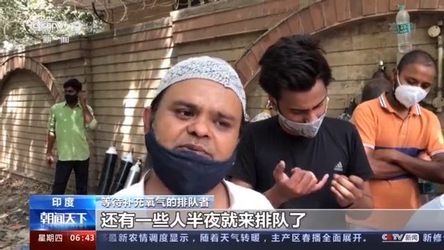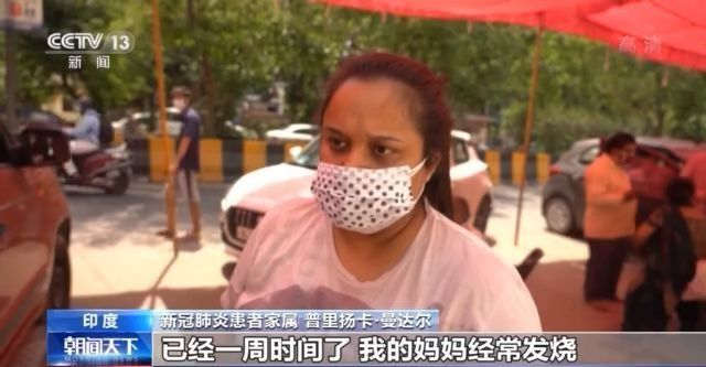 新冠肺炎患者家属 普里扬卡·曼达尔:已经一周时间了,我的妈妈经常发烧,现在她甚至不能(顺畅)呼吸。从家里到这里购买氧气,我路上就已经用了两个半小时。在没有氧气的情况下,我不能把妈妈带来,无论需要多长时间,我都要给她找到氧气,我要在这里等。
