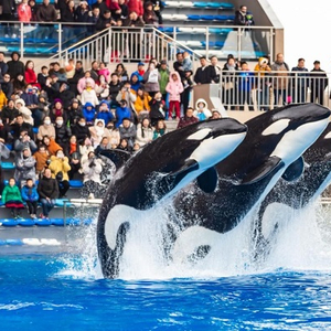 在虎鲸科普秀中,胖虎、饼干、肖恩、朵拉四只黑白色系的海洋霸主凌空腾跃,在蔚蓝天空下激起浪花,雄姿英发释放本真天性;虎鲸保育员通过与虎鲸喂食、做游戏等友爱互动还原虎鲸真实日常。虎鲸剧场现场以虎鲸科普问答、专业科普讲解等寓教于乐的方式,向市民游客传播海洋、海洋动物等科普知识。
