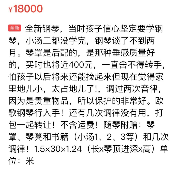 今天,打开某鱼,上面有各种各样的二手钢琴信息,介绍中多数都会有类似这样一句话。