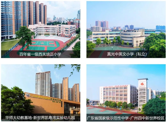 家门口四大学府环绕,新世界·凯粤湾社区内配备华师大幼教基地——凯粤湾实验幼儿园、百年省一级学府——西关培正小学、荔湾区公办学校TOP3广东省国家级示范性中学——广州四中新世界校区、“广州十大民校”——真光中英文小学等,学校已全部开学,满足2-16岁学龄教育需求;