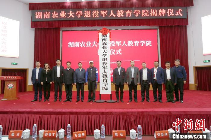 中新网长沙4月30日电(向一鹏 裴昌胜 朱创)湖南农业大学退役军人教育学院30日揭牌成立,这标志着湖南省首个退役军人教育学院正式落地。