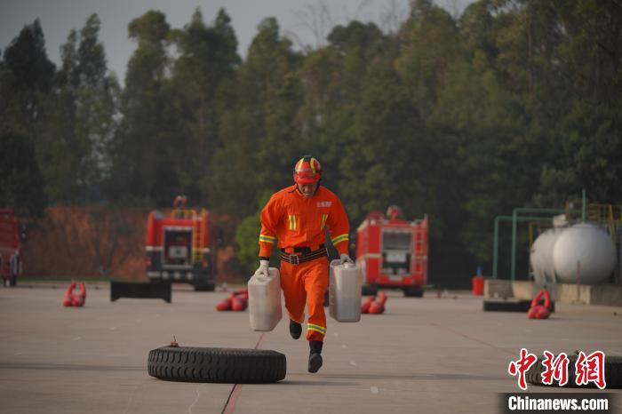 图为消防员展示训练成果。 刘冉阳 摄