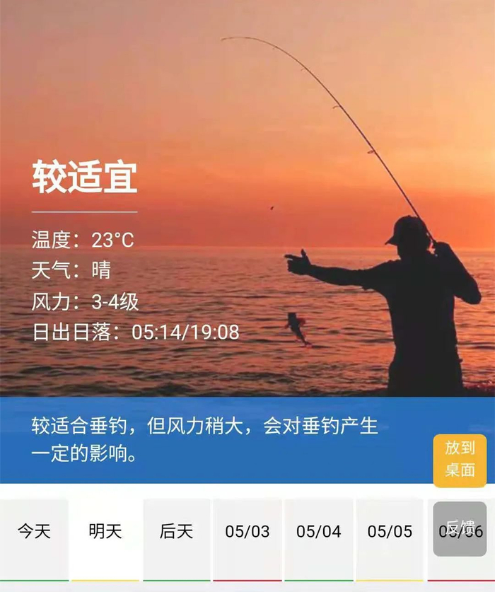 为了便于垂钓人士了解天气影响,我们常见的气象指数里,也增加了钓鱼指数。钓鱼指数分为3级,级数越高,越不适合钓鱼。在有利于钓鱼的气象条件下垂钓,不仅能有较大的收获,还可以达到休闲娱乐的目的。