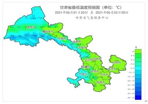 甘肃省2021年5月1—3日最低气温预报图(单位:℃)