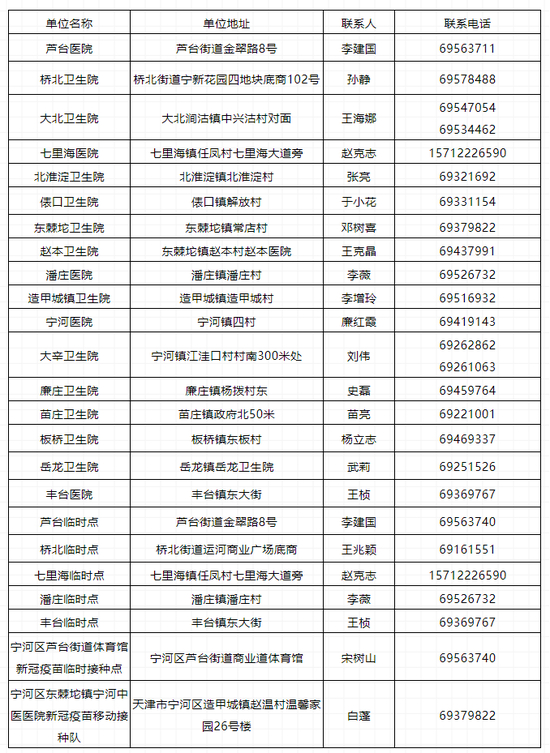 静海区“五一”期间新冠病毒疫苗接种门诊信息公示