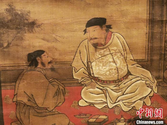 元代陈及之《便桥会盟图》卷描绘武德九年(626年)突厥入犯,李世民化危为安与之会盟的故事。人物衣纹用“铁线描”,细劲准确,为北宋李公麟传派。树石则近于郭熙画法,有元人笔墨韵味。马顺平说,据统计这幅画中有200多个人物,画家对人物描绘工细,且表情各有不同,和明清时期画中千人一面的雷同,完全不一样。