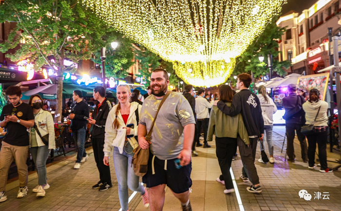 除了灯光秀,在意风区自由道与民族路上富有空间感的悬浮灯下,市民、游客驻足拍照。更令人惊喜的是,在意大利风情区设置了184基智慧路灯,除具备醒目的显示屏外,智慧路灯还搭载了公共广播、交通流量监测、积水监测等8种服务城市管理和便民功能,不仅为市民提供了感官体验,还为百姓生活提供了极大便利。